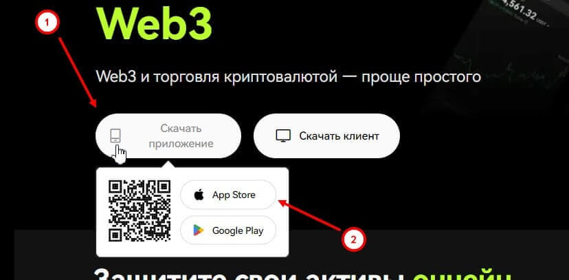 Затем нужно выбрать вариант приложения. Можно скачать в нескольких версиях: как приложение для мобильных телефонов, выбрав вкладку “Скачать приложение” и выбрав ОС iOS или Android, так и “Скачать клиент” для установки инсталлятора на Windows 7, 8, 10 или MacOS последних версий.