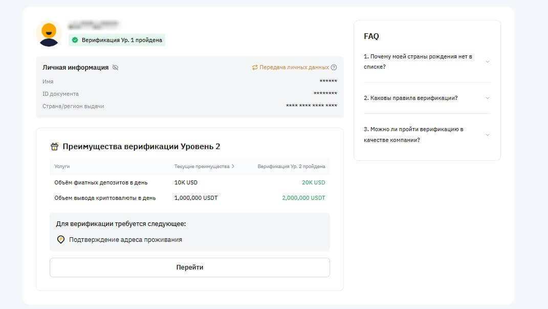 Также важно пройти процедуру по верификации. Процесс займет у пользователя не более часа. Предоставить нужно лишь паспорт, чтобы пройти базовую верификацию. Инструкция располагается в другой нашей статье по ссылке. После верификации каждый сможет не только открыть для себя доступ к стейкингу, но и также повысить лимиты вывода средств.