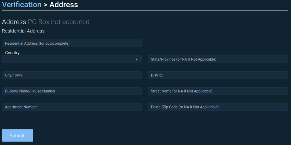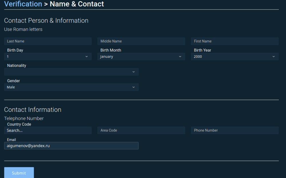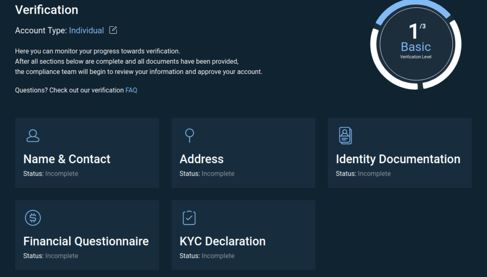 Первый этап подтверждения для базовых аккаунтов. Пропустить этот шаг и сразу перейти на верификацию Full счета нельзя, т.к. для этих этапов требуются разные пакеты документов.