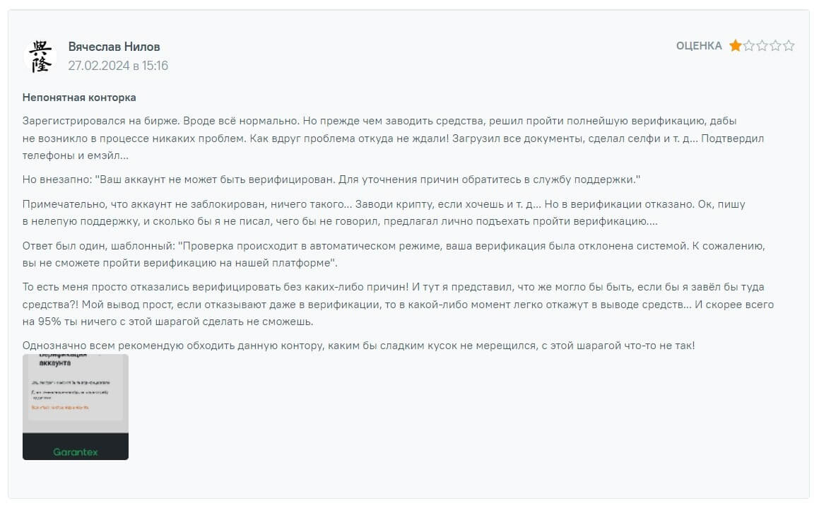 Отзывы о верификации на бирже Garantex
