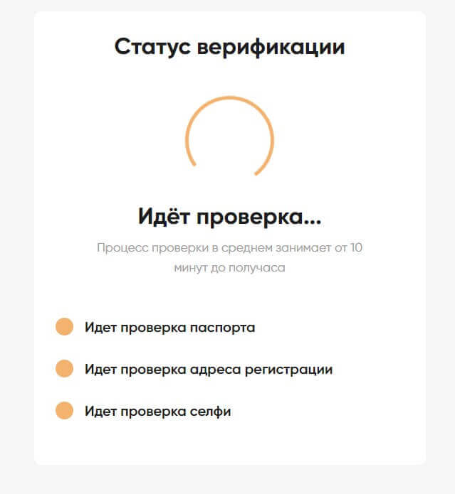 Время, необходимое для проверки документов, может варьироваться, но обычно составляет от нескольких минут до нескольких дней. Во многом время проверки зависит от текущей загруженности службы поддержки.