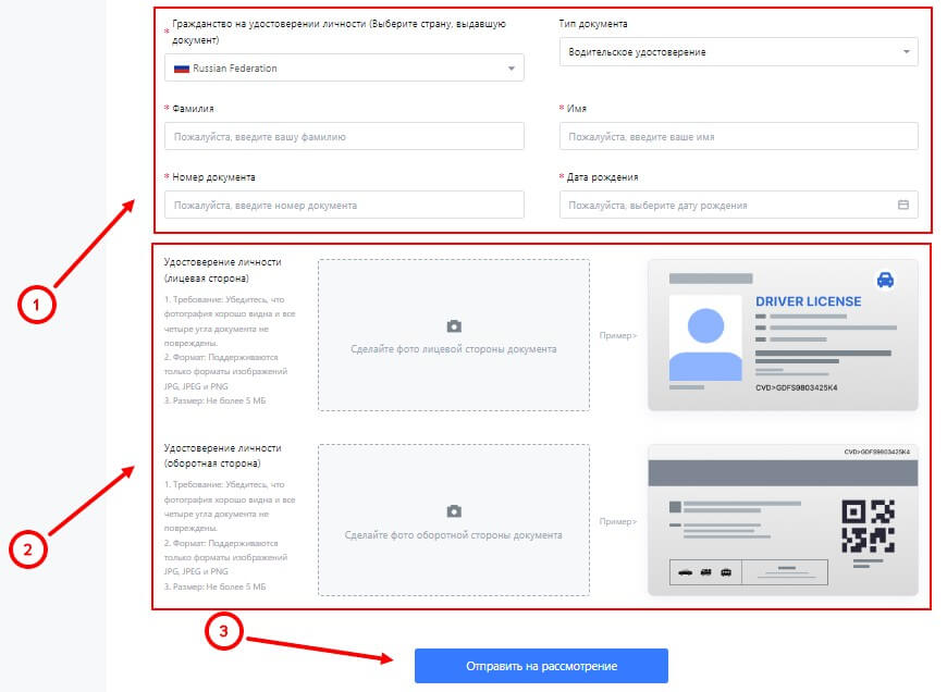 При прохождении верификации от вас не потребуются лишняя информация, лишь парочку документов, позволяющие подтвердить личность пользователя. Компания ответственно относится к сбору и хранению информации, не передает третьим лицам и соответствует политике конфиденциальности. Для прохождения базовой верификации потребуется лишь документ удостоверяющий личность: паспорт или ВУ