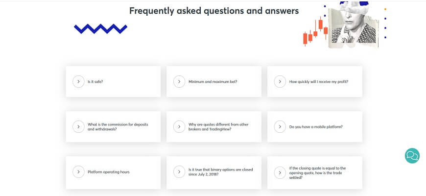 Next, it is suggested to register a trading account or try your skills in options trading on a demo account. Here, there is also information regarding the convenience and safety of daily work on concluding contracts. Clients are offered a platform from the leading provider Trading View and quotes from one of the recognized leaders in brokerage services, FXCM. In most cases, trading is conducted without verification. With such capabilities, it is easy to perform trades on the most volatile market. Any quote displayed in the terminal can be checked at any time through a special form in the personal account. And this is another guarantee that transactions are conducted transparently, without unwanted influence on the process of trend formation for any asset.