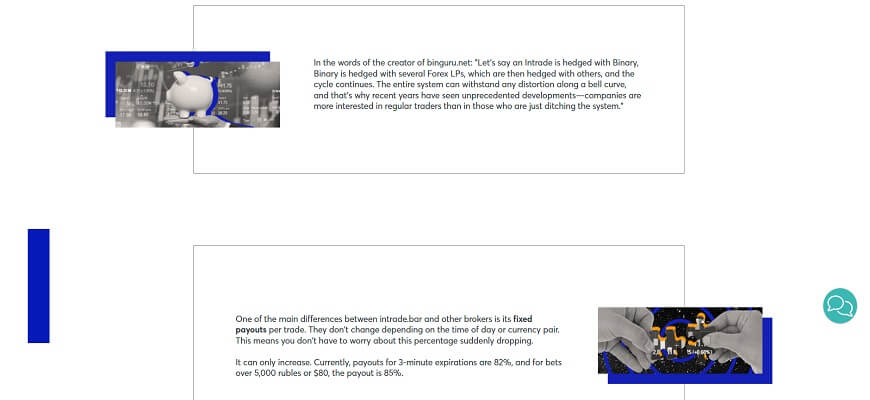 - absence of rules for account blocking. This is often a flaw of dishonest companies, forcing clients to refuse withdrawal requests or even losing their invested funds. During its entire existence, 100% of withdrawal requests from Intrade Bar deposits have been fulfilled completely, without blocking any account