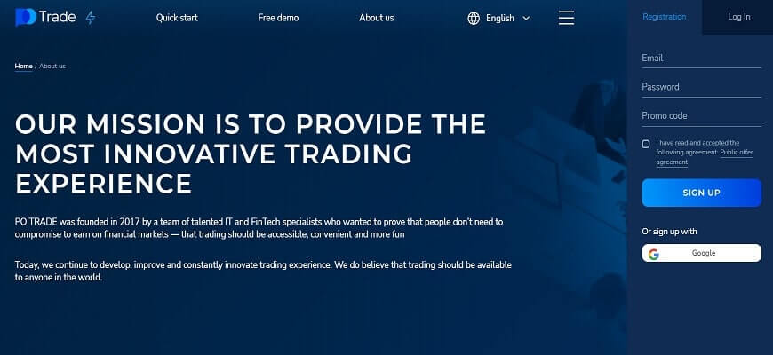 The primary mission of this binary broker is to provide a new trading experience. Founded in 2017, the company has successfully survived several serious financial shocks on global markets while continuing to fulfill all its obligations. This speaks not only to the extensive experience of the development team but also to strong financial stability, which is essential for reliably fulfilling commitments to account holders.