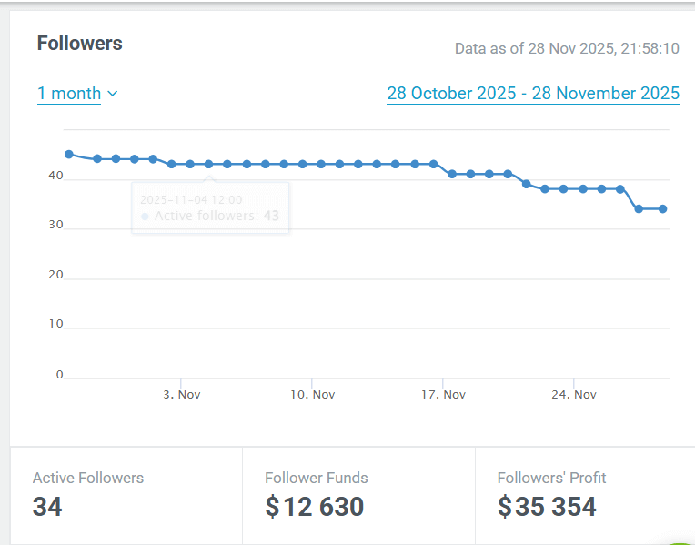 Pay attention to the number of copiers and the volume of capital they manage. A large number of active copiers and managed funds can indicate trust in the trader from other platform participants. However, this should not be the only criterion, as popularity can be driven by recent but unstable successes.
