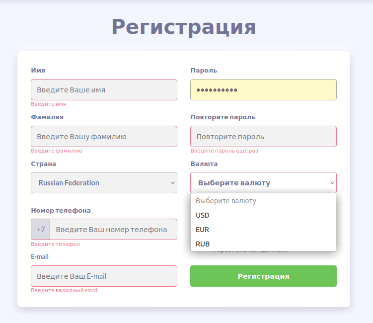 Компания ЭвоТрейд по умолчанию требует наличия у активного клиента верифицированного аккаунта, поэтому на этапе создания новой учетной записи потребуется расширенный по сравнению с конкурентами список информации:
