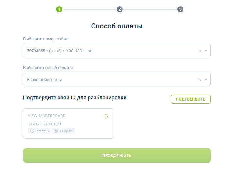 Затем нужно пополнить счет – сумма пополнения начинается от 10 долларов по карте и используя криптовалюты, через платежные системы от 1 доллара (SKRILL – 1$, Neteller – 2 $, Volet – 10 $). Без верификации можно использовать только криптовалюты в сети TRC20 или ERC20.