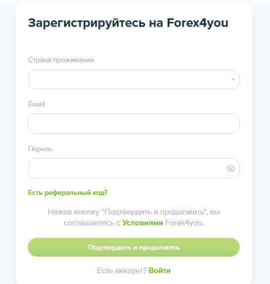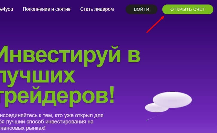Перейдите на сайт Share4you и в верхней части страницы нажмите на кнопку “Открыть счет”.
