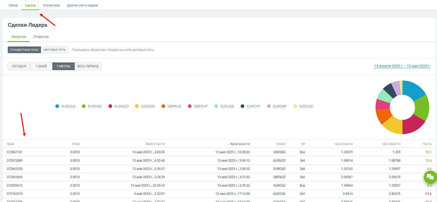 Следующим шагом будет изучение стратегии трейдера, изучив торговую активность в разделе “Сделки” (некоторые трейдеры могут скрыть сделки, не показывая их публично). Важно, чтобы его методы и подход к управлению капиталом совпадали с вашими инвестиционными предпочтениями и терпимостью к риску. Некоторые стратегии могут быть сфокусированы на краткосрочных операциях с высоким риском, в то время как другие предпочитают долгосрочные и менее рискованные инвестиции.