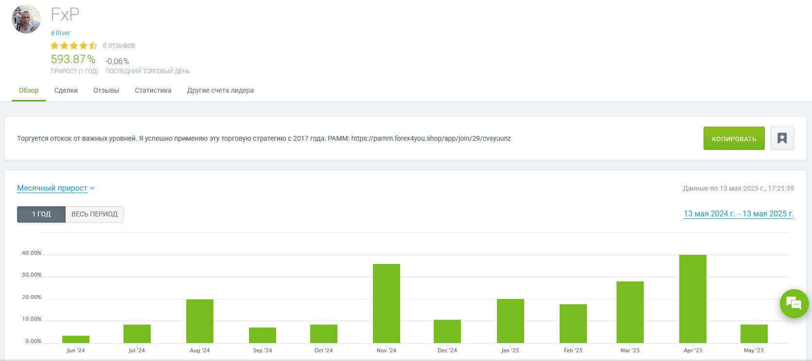 Выбор трейдера для копирования сделок на платформе Share4you — ключевой момент, от которого зависит успешность инвестиций. Для начала стоит обратить внимание на историю торговли трейдера. Важно изучить его результаты за длительный период, предпочтительно не менее 6-12 месяцев, чтобы увидеть стабильность прибыльности и уровень риска. Оцените процент успешных сделок и общий рост депозита.
