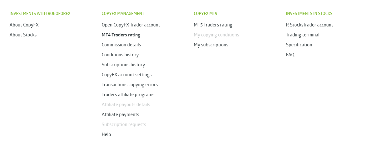 По ссылке «Help» существующий или потенциальный инвестор получают инструкцию о том, как правильно начать вложения в активных трейдеров, выбирать наиболее подходящего источника для копирования и проводить аналитику среди имеющихся биржевиков. Полезной будет и отдельная инструкция по контролю за активными подписками, из которой пользователь получит информацию по смене трейдера-источника на более подходящего. Своевременный выбор лучших биржевиков позволяет не только сохранить свои капиталы от возможной потери, но и значительно их приумножить.