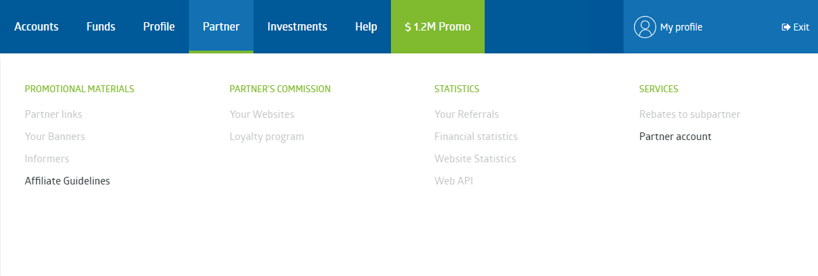 Знание функционала позволит оперативно производить требуемые операции со своими финансами, осуществлять необходимые настройки, запускать партнерские программы и принимать участие в системах копирования сделок.