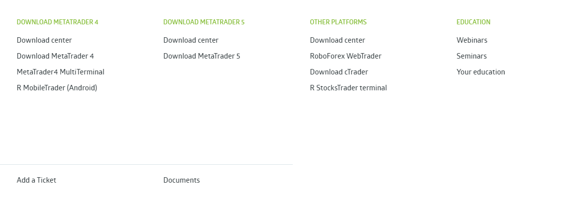 Здесь можно не только получить возможность скачать предлагаемые терминалы для множества мобильных и настольных платформ, но и создать обращение (Тикет) в службу поддержки при возникновении проблем.