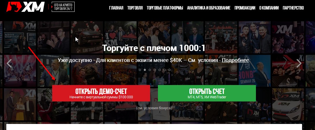 Чтобы открыть демо-счет, необходимо также перейти на официальный сайт компании и нажать на красную кнопку “открыть демо-счет”.