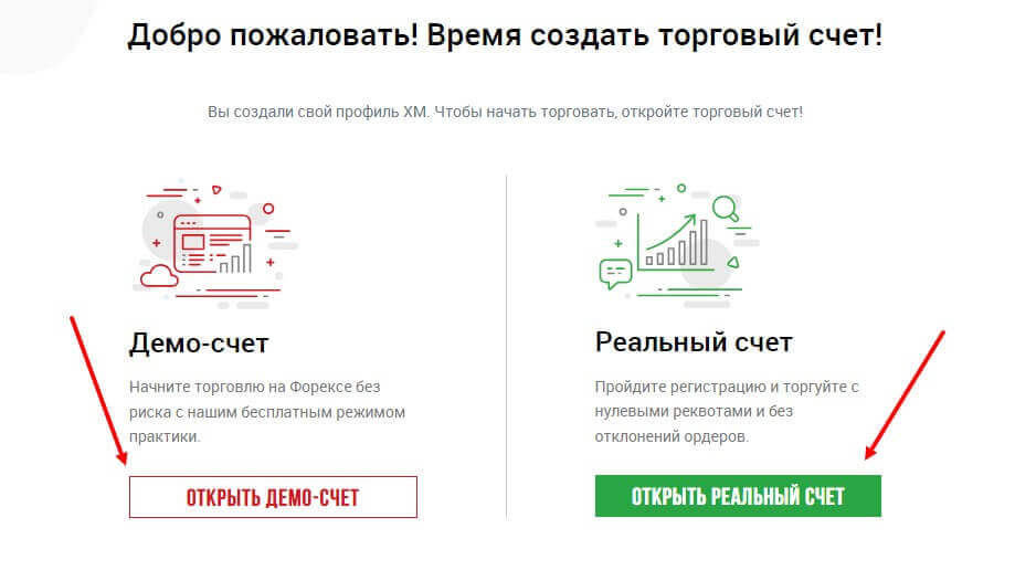 После регистрации клиенты могут открыть собственный счет, тем самым пользуясь полноценно услугами компании. Чтобы сделать это, нажмите на зеленую кнопку “Открыть реальный счет”, если хотите воспользоваться сервисом и торговать на собственные деньги или же “Открыть демо-счет”, если планируете перед пополнением отработать стратегии.