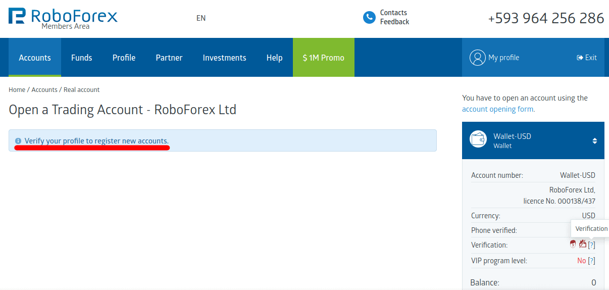 Читателей может интересовать, можно ли торговать без верификации. О том, обязательно ли проходить подтверждение, четко отвечает предупреждение при попытке открыть счет в неверифицированном личном кабинете.