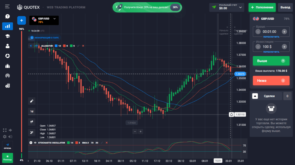 Ставшие классическими индикаторы технического анализа могут отлично себя показать при работе на современных финансовых активах, как торговля криптовалютой и изучение актуального состояния тренда для бинарных опционов и рынка форекс. В этом материале рассмотрим, как правильно пользоваться функциональной разработкой от одного из признанных гуру биржевой торговли – Билла Вильямса. Посмотрим, как работает этот фондовый индикатор на бинарных и криптовалютных площадках. Увидим, что показывает он в разных ситуациях на рынке и как настроить его для получения актуальной информации о текущем состоянии тренда и наилучших моментах для открытия позиций.