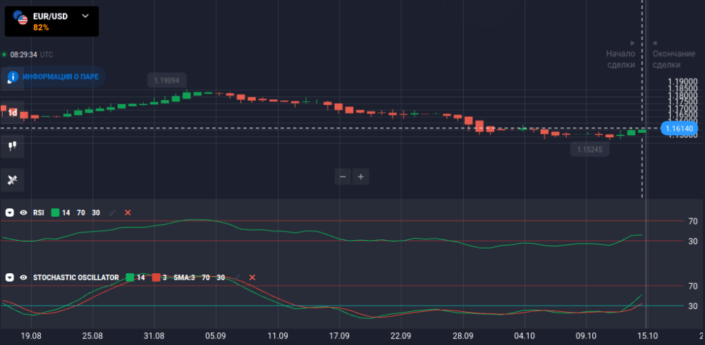 В качестве еще одного примера рассмотрим эту систему принятия решений для пары EUR/USD бинарного опциона в Quotex.