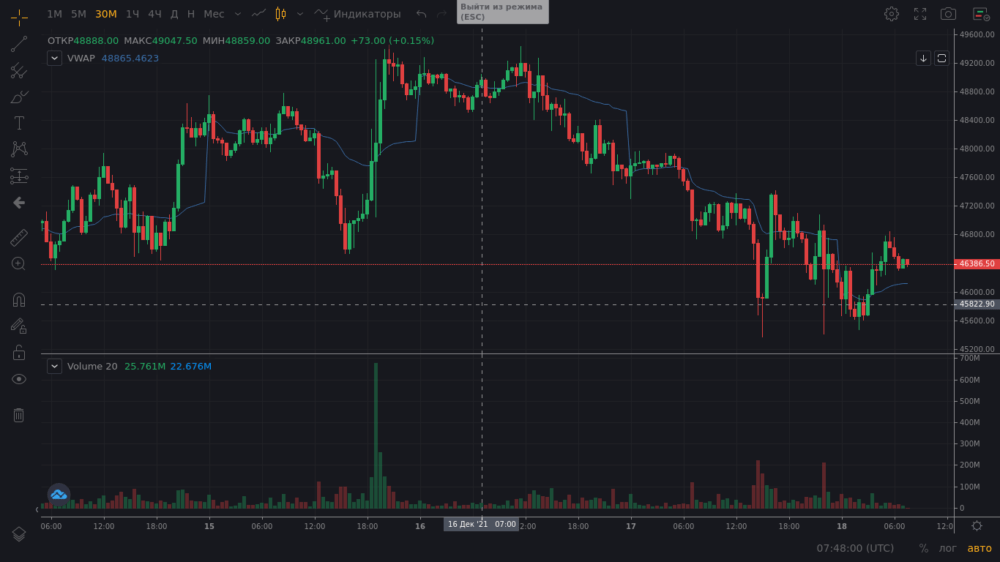 В Tradingview, данные которого используются брокерами криптовалютного рынка, рассматриваемый инструмент работает исходя из выбранного таймфрейма и не имеет возможности перестройки или добавления других периодов. Однако вполне может применяться для поиска моментов входа в рынок в соответствии с указанными далее советами для анализа, и фидбек от трейдеров с популярных биржевых форумов это полностью подтверждает.