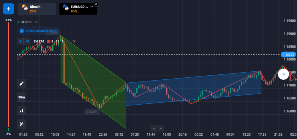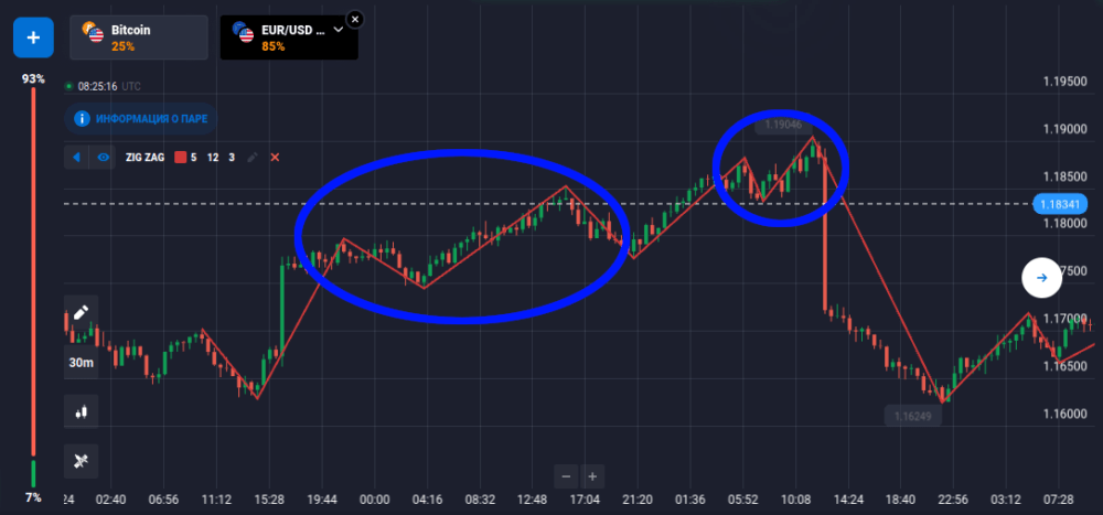 Использование индикатора Зигзаг как средства идентификации трендовых пиков и создания ценовых каналов — отличная стратегия на любых финансовых площадках, от классических биржевых активов до рынка форекс и в бинарных опционах.