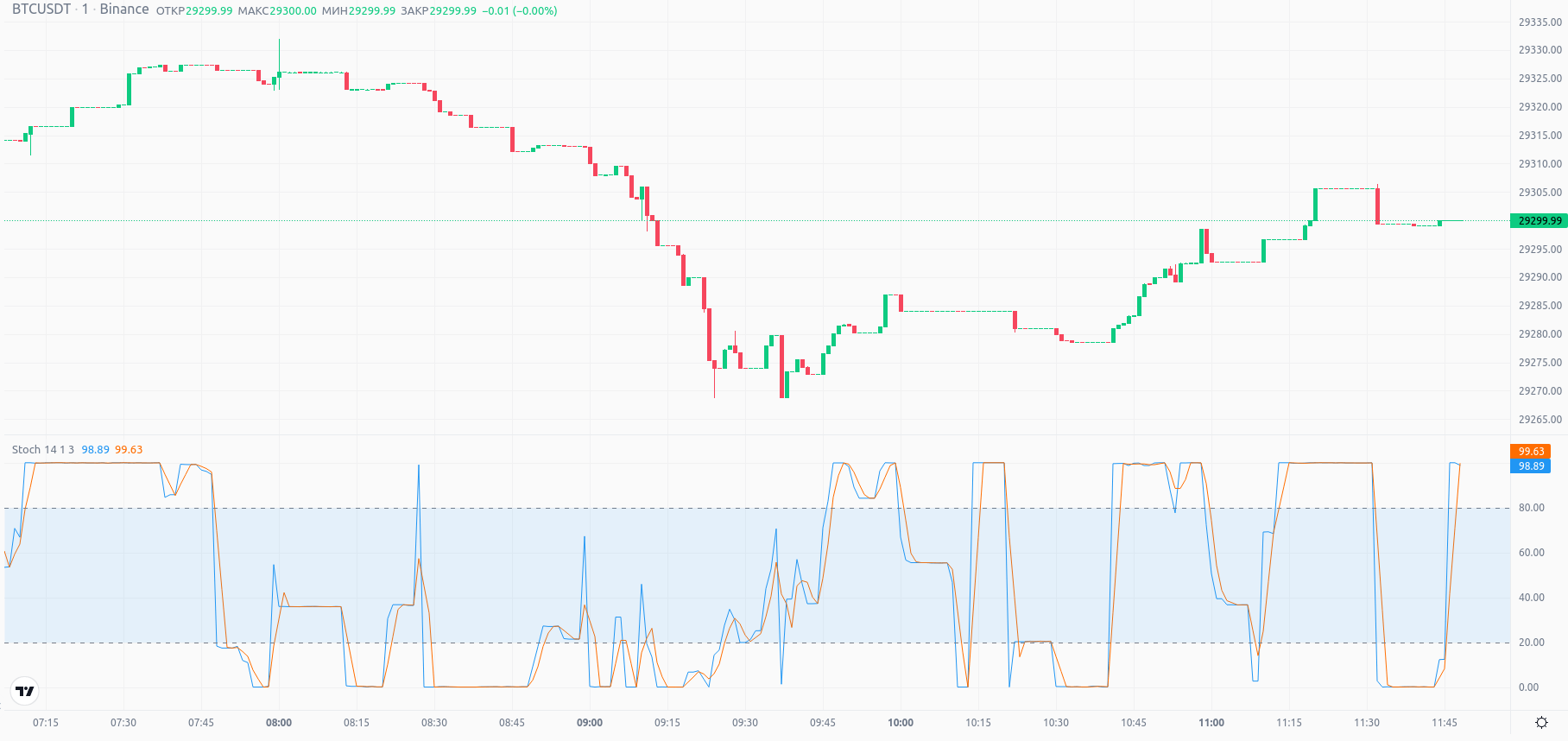 Принцип анализа графика со стохастическим осциллятором схож с RSI в плане похожих уровней перекупленности или перепроданности, однако имеет иную логику генерации надежных сигналов входа в рынок.