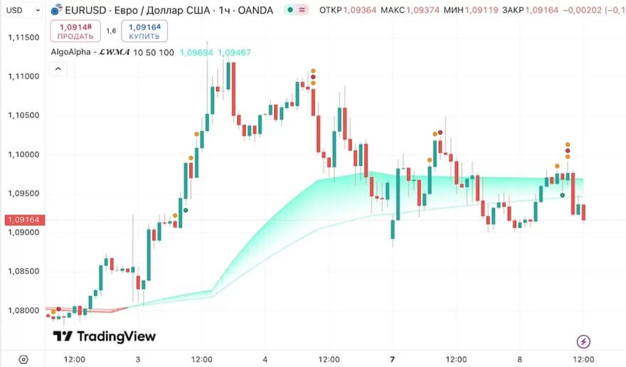 Динамические уровни поддержки или сопротивления можно определить с помощью индикатора LWMA. В отличие от обычного математического сглаживания, этот инструмент учитывает фактор ликвидности при усреднении ценовых значений. Благодаря этому трейдеры получают возможность распознавать области, где движение цены обеспечено реальным капиталом, отличая их от зон с искусственно сформированными импульсами.