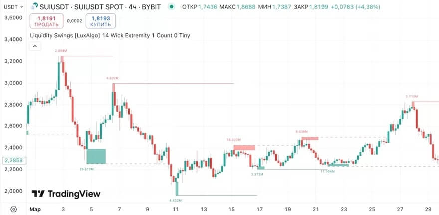 Ниже предлагаем список индикаторов ликвидности на Трейдингвью, которые доступны абсолютно бесплатно – их также можно скачать на MT4 и настроить или использовать на биржах, например, на Байбит.