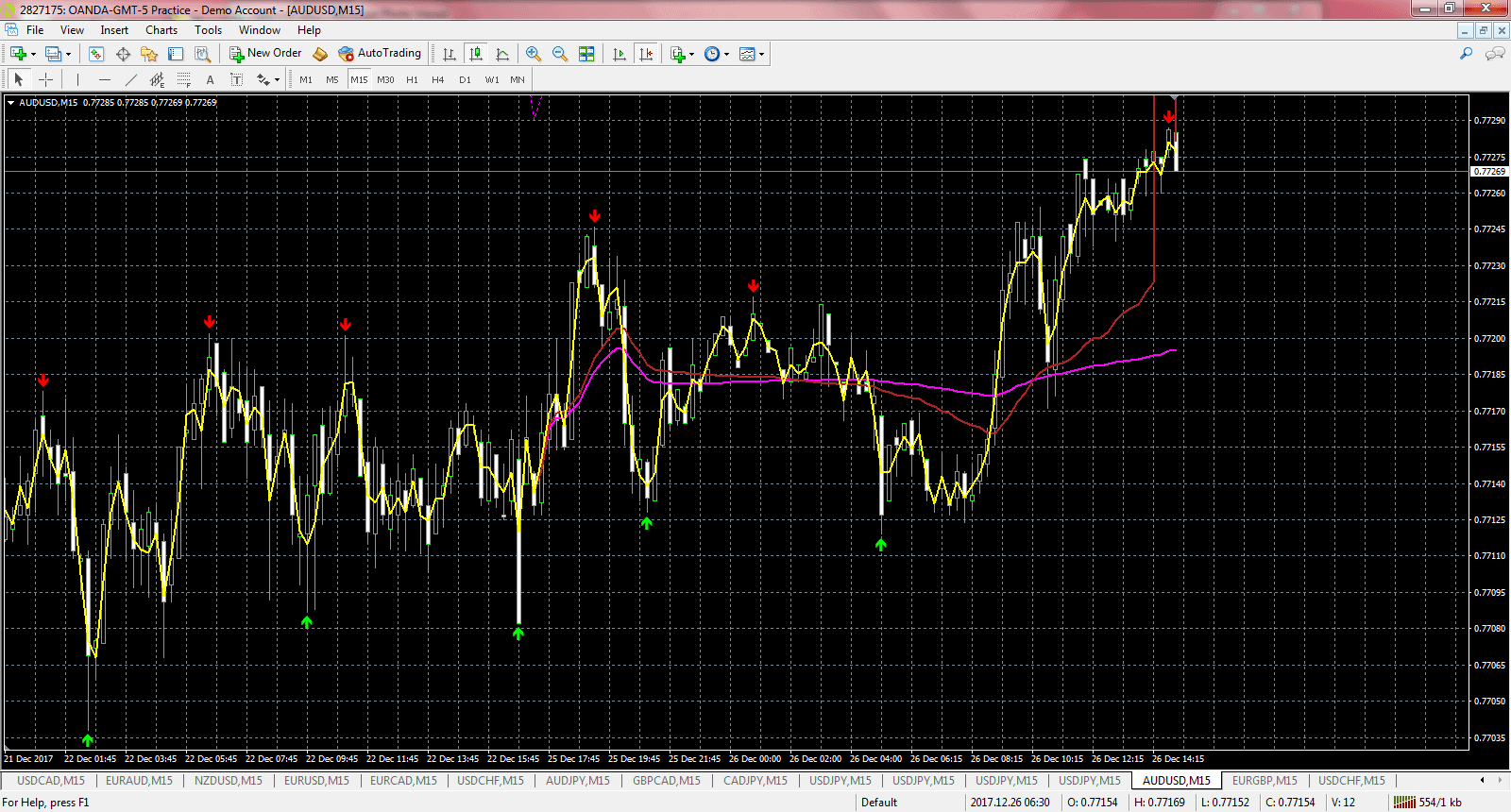- Не подвергается ценовому шуму, таким образом легко используется на коротких таймфреймах М1-М5-М15;