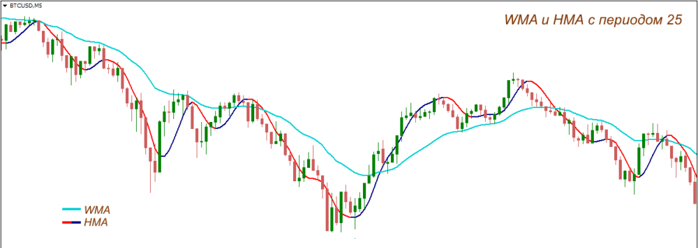 - HMA не должна быть единственным инструментом в стратегиях, использующих пересечения. Здесь запаздывание необходимо, как в случае нескольких Moving Average, показывающих ситуацию по другим таймфреймам для большей точности сигнала.