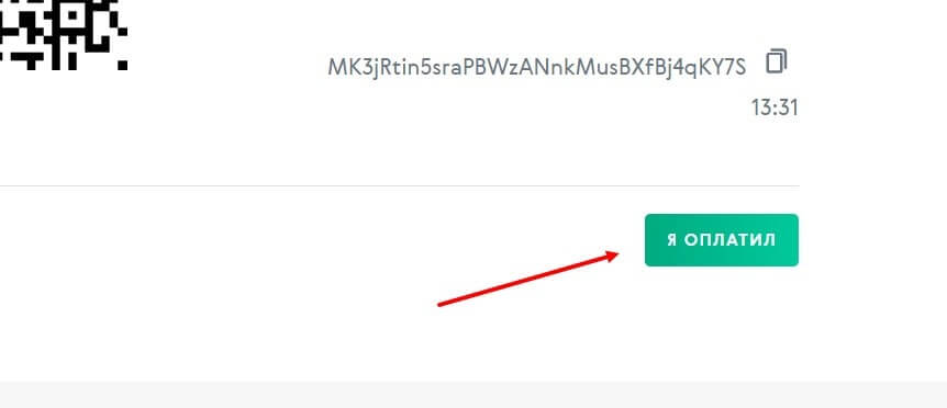 - Как только вы произвели перевод, нажмите на кнопку «я оплатил». Это важный шаг, поскольку он сигнализирует системе о том, что транзакция была инициирована. После нажатия кнопки ожидайте подтверждения транзакции в блокчейне.