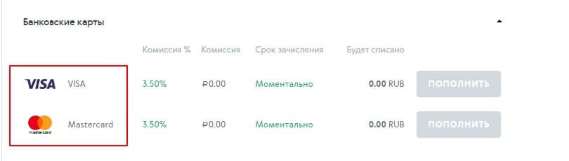 - банковской картой обоими вариантами (платежные системы VISA или Mastercard) составляет 3,5%;