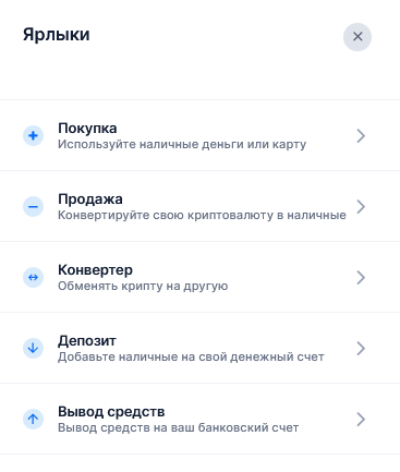 - Депозит – ввод фиата на баланс для дальнейшего проведения транзакций в криптовалюте.