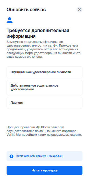 Все дальнейшие этапы проверки будут проходить с привлечением сервиса Veriff.