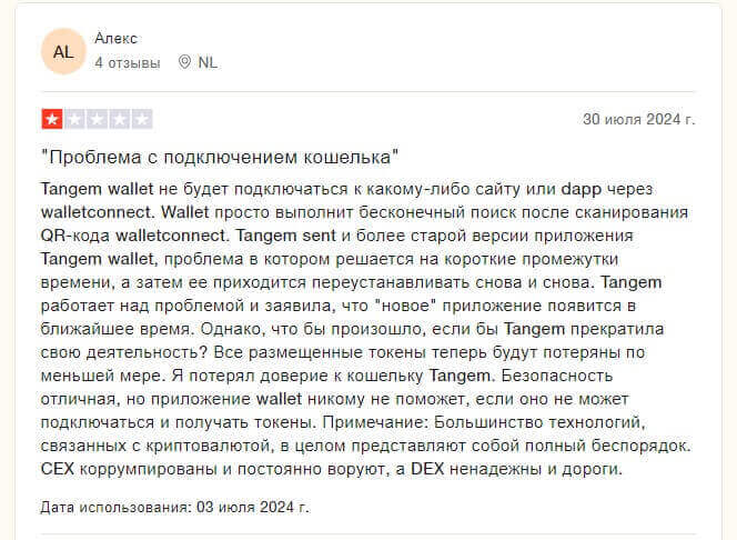 Несмотря на множество позитивных отзывов, Tangem Wallet также сталкивается с критическими комментариями от трейдеров.
