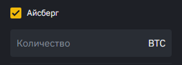 - Выставить заказ «Айсберг». Работа с ними полезна, когда планируется закупка большого количества одного актива и биржевой игрок хочет получить его по лучшему предложению. «Стаканные» стратегии (когда причиной входа служит появление в заявочной книге объемного лота), используемые многими внутридневными трейдерами, могут стать причиной рывка при входе на большом объеме криптоактива. В этом случае и используют Айсберг, когда при выполнении одной части выставляется новая с таким же количество. Метод Айсберг считается исполненным, когда трейдер получает установленный объем в открытых позициях. Единственный указываемый здесь параметр – требуемое количество актива. Далее система автоматически разбивает его на 10 частей (этим уровнем ограничивается их общее число) и начинает постепенно исполнять их. Метод особенно эффективен в «боковике», когда прогнозируется скорый прорыв.