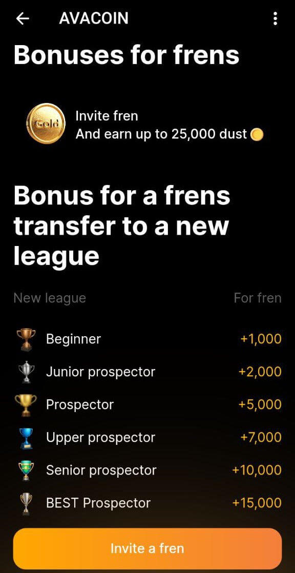 Для того чтобы поделиться приглашением, начните с тапа по кнопке «Frens», расположенной в нижней панели. Следующим шагом будет загрузка страницы, на которой вы выберете опцию «Invite a fren». Это действие автоматически скопирует ссылку в вашем устройстве. После этого отправьте эту ссылку тем из ваших знакомых, кто еще не зарегистрировался на платформе, чтобы зарабатывать вознаграждения за их достижения.