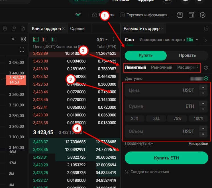 Токены поступят к вам на ваш счет сразу после того, как цена достигнет вашего значения. Если необходимо купить моментально, используйте рыночный ордер, при этом комиссия за это будет выше (на высоких VIP уровнях). Также приобрести Ethereum в 2025 году можно на ByBit, Binance, HTX (ex. Huobi) и других биржах, указанных в нашем рейтинге.
