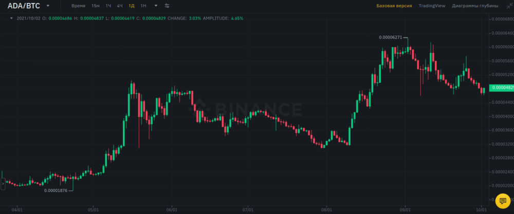 Ниже представлен график в дневном таймфрейме на бирже Binance с подробным описанием ключевых точек и волатильности на графике.