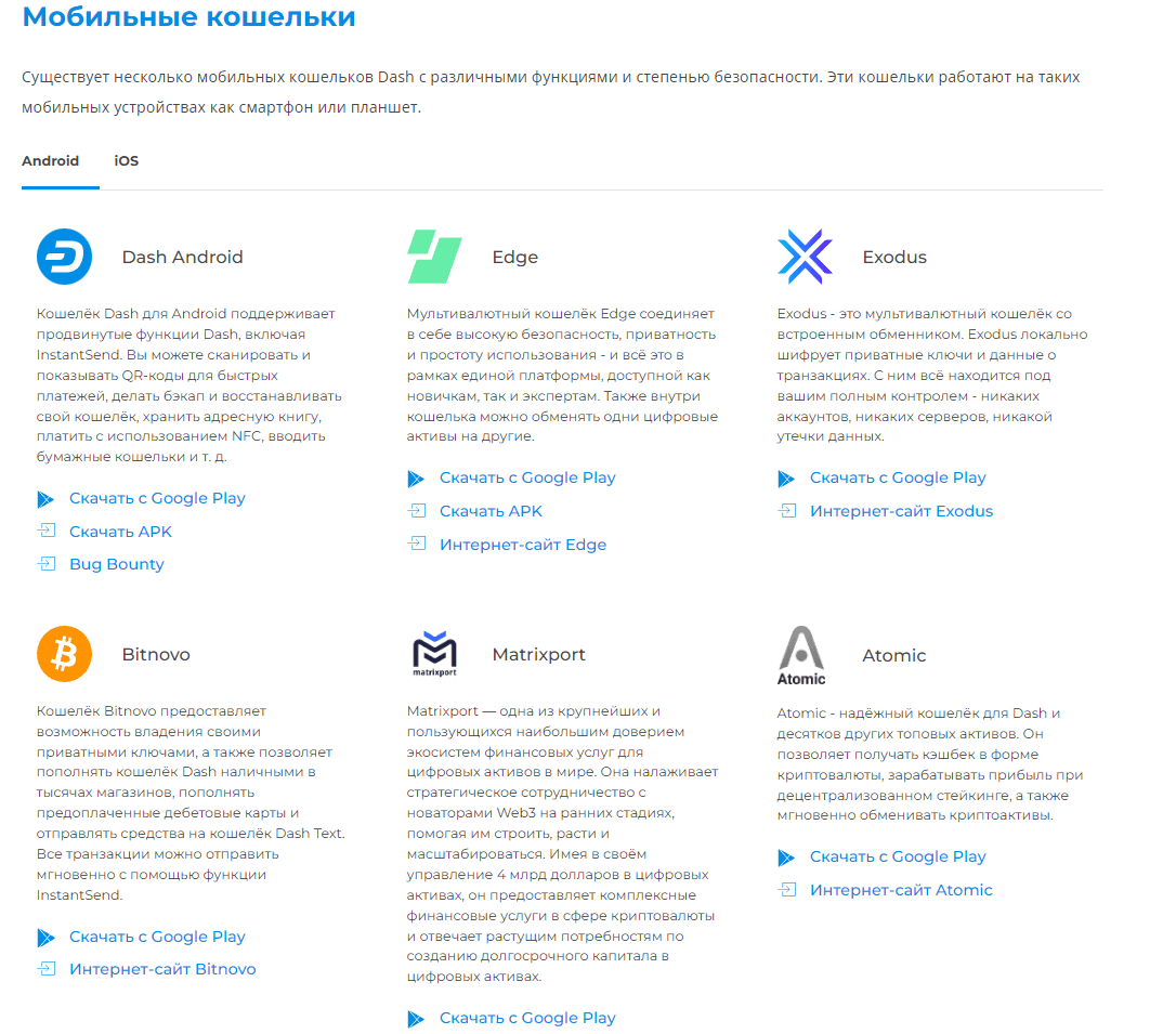 В официальных магазинах приложений для Android и iOS на сегодня представлены как официальный клиент, так и партнерские программы, поддерживающие все требуемые владельцам криптомонет опции. Ниже приведен список рекомендуемых приложений для Android.