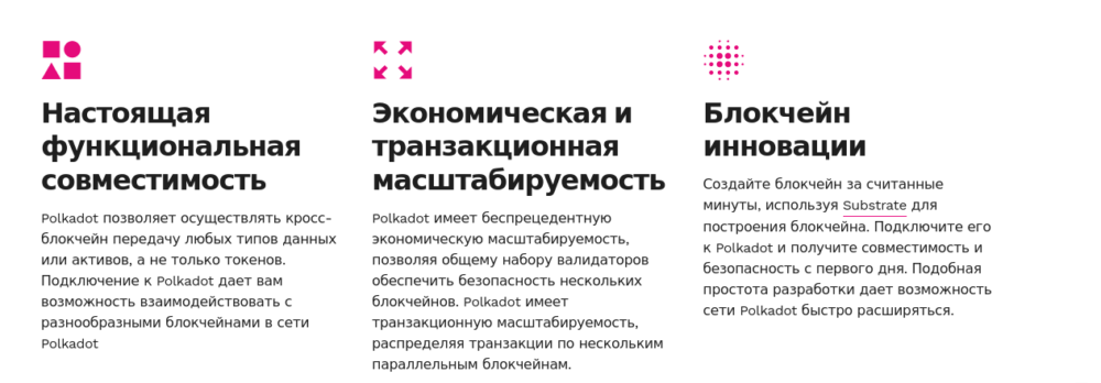За все время своего существования проект Polka успел заслужить звание «убийцы Ethereum». И тому есть ряд веских причин. Как и в свое время Ethereum, появлению этой разработки предшествовало желание авторов улучшить существующее описание и параметры системы. Именно благодаря этому появилась мультиплатформенность. Отдельные блокчейны в сети носят имя «парачейн» и могут свободно взаимодействовать с другими проектами платформы. Однако в текущий момент количество потенциальных парачейнов ограничено, а их распределение в сети происходит благодаря аукционным торгам.
