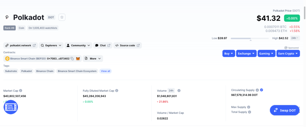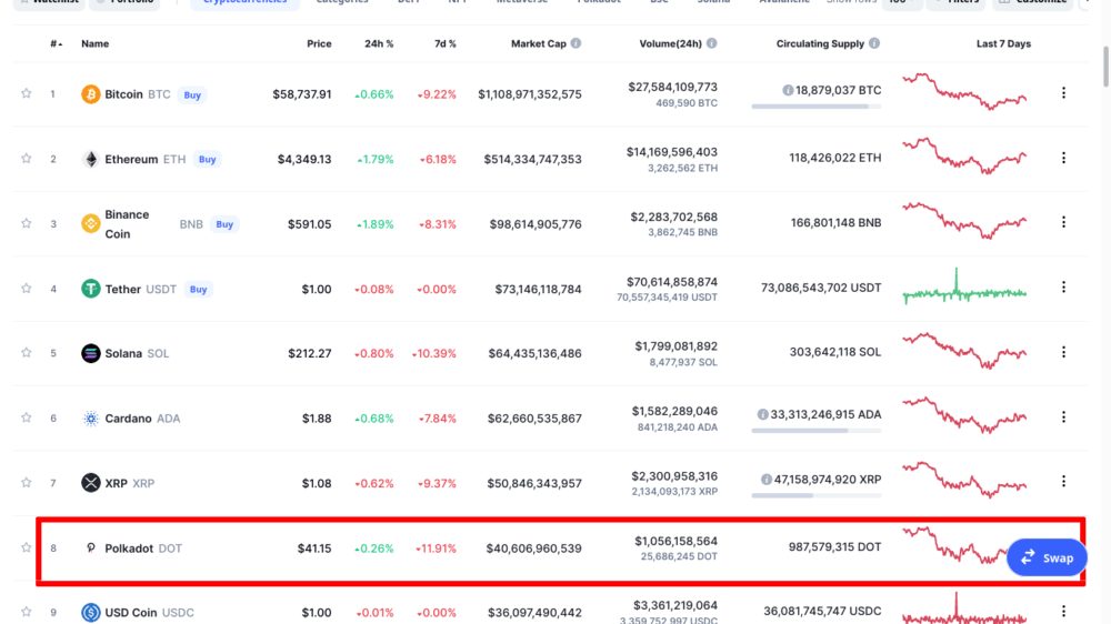 Уже в первых строках обзора имеем возможность заинтересовать читателей отличными перспективами этой платформы. В числе ее создателей — разработчик Гэвин Вуд, согласно Википедии принимавший самое активное участие в создании одного из лидеров современного крипторынка Ethereum. Стартовав с идеи создания нового прорывного проекта, на сегодняшний день его команда может похвастаться существованием сразу нескольких экосистем, представляющих интерес для широких масс. Сюда входят два децентрализованных блокчейна, а также великое множество частных проектов, функционирующих на основании протокола PolkaDot. А сама монета занимает 8-е место по капитализации, что для разработки, о которой многие начинающие криптотрейдеры и не слышали, является очень приличным результатом.