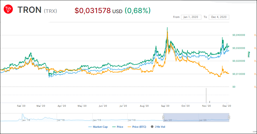 Делать какой-либо прогноз касательно криптовалют особенно сложно. Аналитики еще в 2018 г. прогнозировали цену Трон на уровне 10 центов за токен. И сколько стоит он в конце 2020 г., после двух лет присутствия на биржах? Смотрим график выше и этому есть как минимум две причины