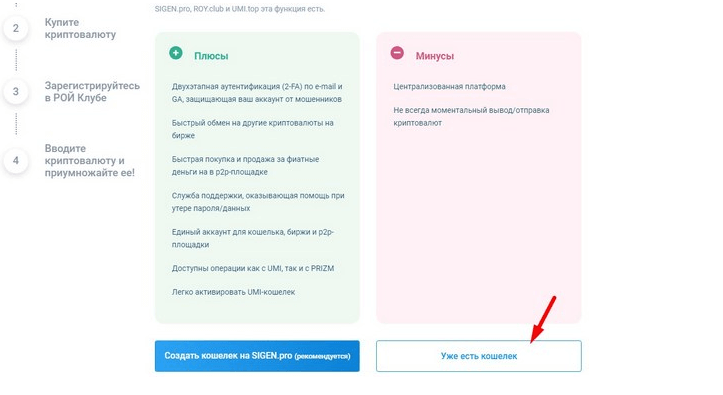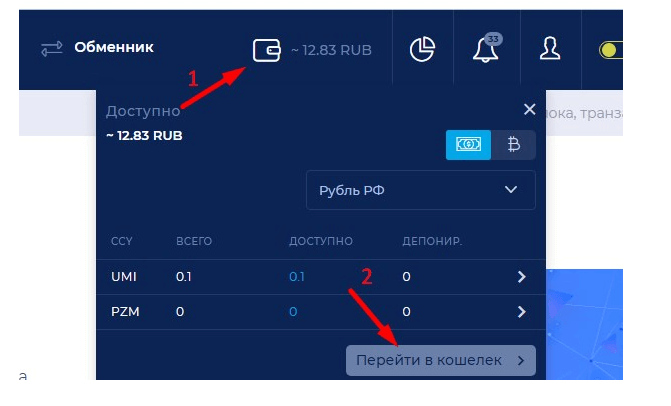 Здесь же открывается кошелек, чтобы покупать UMI за рубли или другую поддерживаемую платформой фиатную валюту.