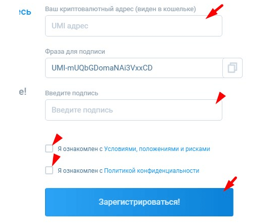Процесс регистрации на платформе UMI и формирование крипто кошелька