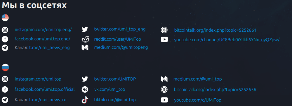 Единственное, что удалось выяснить общественности – это то, что хостинг сайта и операционной платформы проекта зарегистрирован в г. Сан — Франциско, США. Официальный сайт — (www.umi.top).