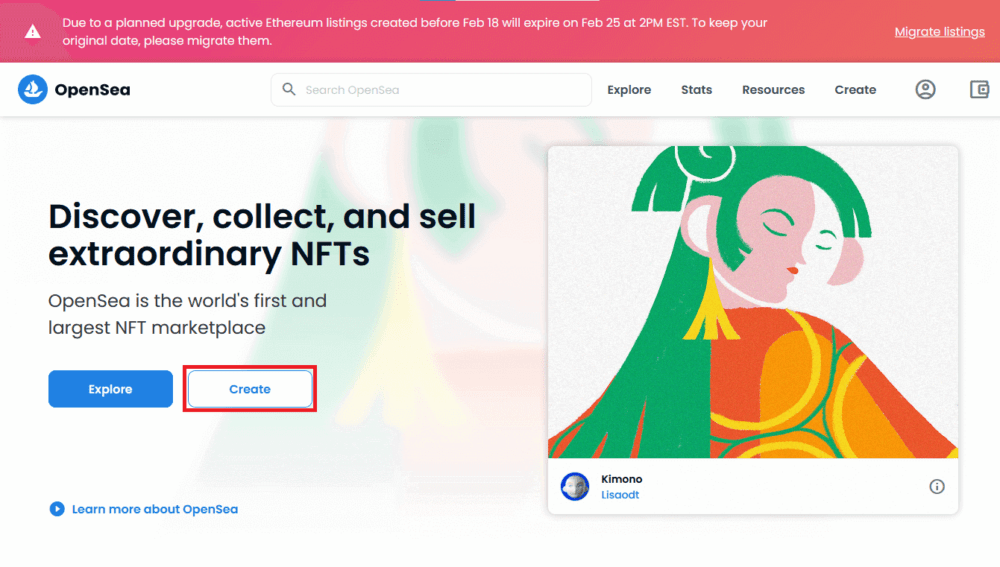 Переходим на сайт opensea.io и нажав на кнопку “Create” проходим через несколько шагов получения эксклюзивных прав. Процесс токенизации носит название «митинга» и в отличие от майнинга доступен лишь единожды.