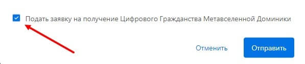 Важно! При выборе гражданства России, ниже поля с датой рождения можно выбрать пункт “Подать заявку на получение Цифрового Гражданства Метавселенной Доминики”. Это позволяет в будущем пользователям получить настоящий паспорт государства Доминики, пользоваться банковскими счетами данной страны, а также получать кредиты у местных банков или регистрироваться в качестве поставщика услуг.