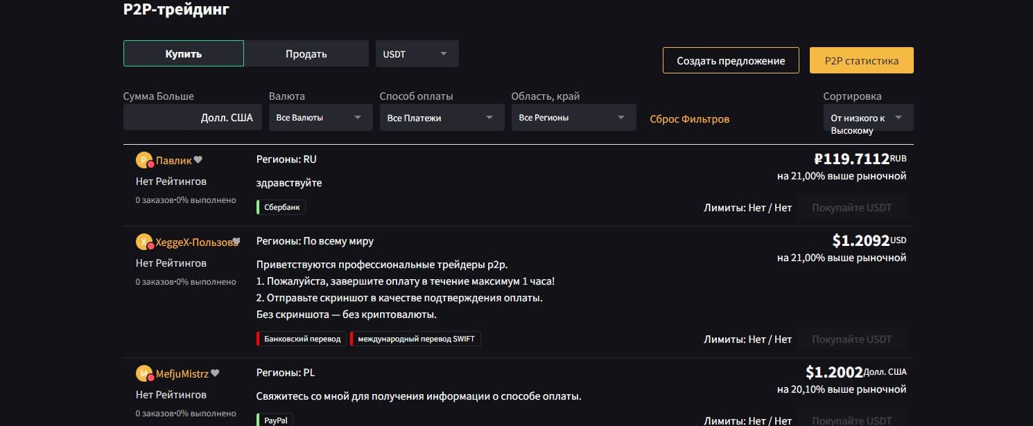 Что такое P2P на криптовалютой бирже Xeggex