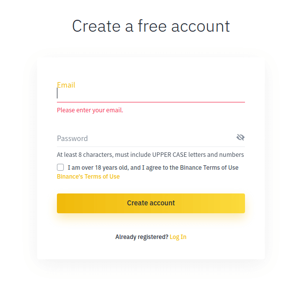 Как и большинство крупных криптовалютных платформ, эта биржа для работы в демонстрационном режиме предоставляет трейдерам отдельный доступ на специально разработанный для этих целей портал. Расположен он по адресу testnet.binancefuture.com, демо счет без регистрации получить нельзя. Открывая главную страницу, трейдер попадает в окно терминала с возможностью логина под своими учетными данными или проведения первичной регистрации. Процедура довольно тривиальна — необходимо ввести свой электронный адрес, придумать пароль, а затем подтвердить регистрацию.